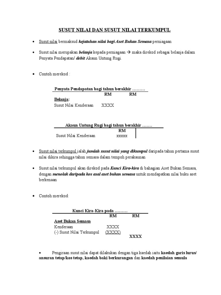 Selepas pembelian awal aset, tidak ada susut nilai terkumpul, jadi nilai buku adalah kos. Need to translate susut nilai terkumpul from malay? Susut nilai terkumpul pada 1 januari pindahan dari hartanah dan peralatan (nota 16) caj bagi tahun semasa hapus kira pada 31 disember. Sekiranya susut nilai aset tidak diberi perhatian, ia boleh menjejaskan keuntungan syarikat. Susut nilai terkumpul aset sehingga satu titik dalam hayatnya.